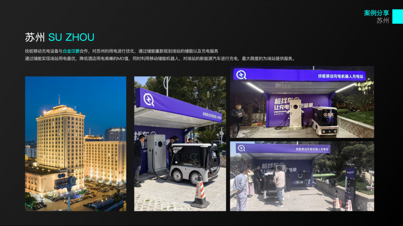 找樁移動(dòng)充電設(shè)備與白金漢爵合作,對(duì)蘇州的用電進(jìn)行優(yōu)化,通過(guò)儲(chǔ)能重新規(guī)劃場(chǎng)站的儲(chǔ)能以及充電服務(wù) 通過(guò)儲(chǔ)能實(shí)現(xiàn)場(chǎng)站用電最優(yōu),降低酒店用電高峰的MD值,同時(shí)利用移動(dòng)儲(chǔ)能機(jī)器人,對(duì)場(chǎng)站的新能源汽車(chē)進(jìn)行充電,最大限度的為場(chǎng)站提供服務(wù)