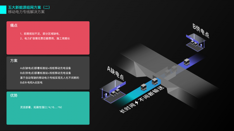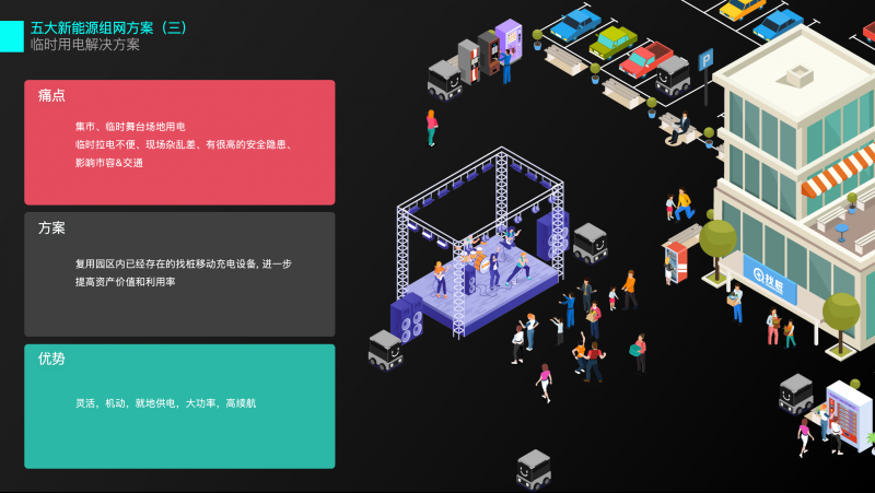 提升園區(qū)用電經(jīng)濟(jì)性;用電區(qū)域前期規(guī)劃不足;集市/臨時(shí)舞臺(tái)場(chǎng)地用電;老舊小區(qū)無(wú)多余電容;充電需求潮汐現(xiàn)象嚴(yán)重/固定充電樁投入大等問(wèn)題提供便利優(yōu)質(zhì)高效的解決方案